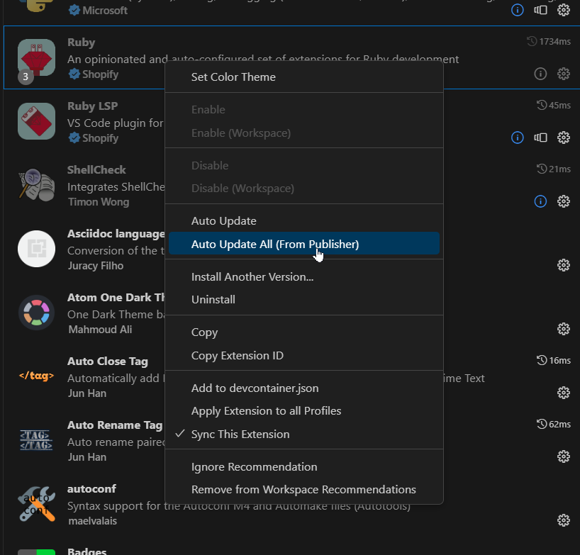 If you use Visual Studio Code, and you work in Ruby because you maintain a Jekyll website, you might find the following VS Code extensions helpful.