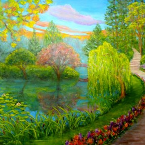This virtual nature soundscape was created as ambiance for an art show at a gallery that I used to co-own with artist Ellen Joseph. The recording simulates what you would hear as you walk next to a pond and pass by two groups of frogs and birds.